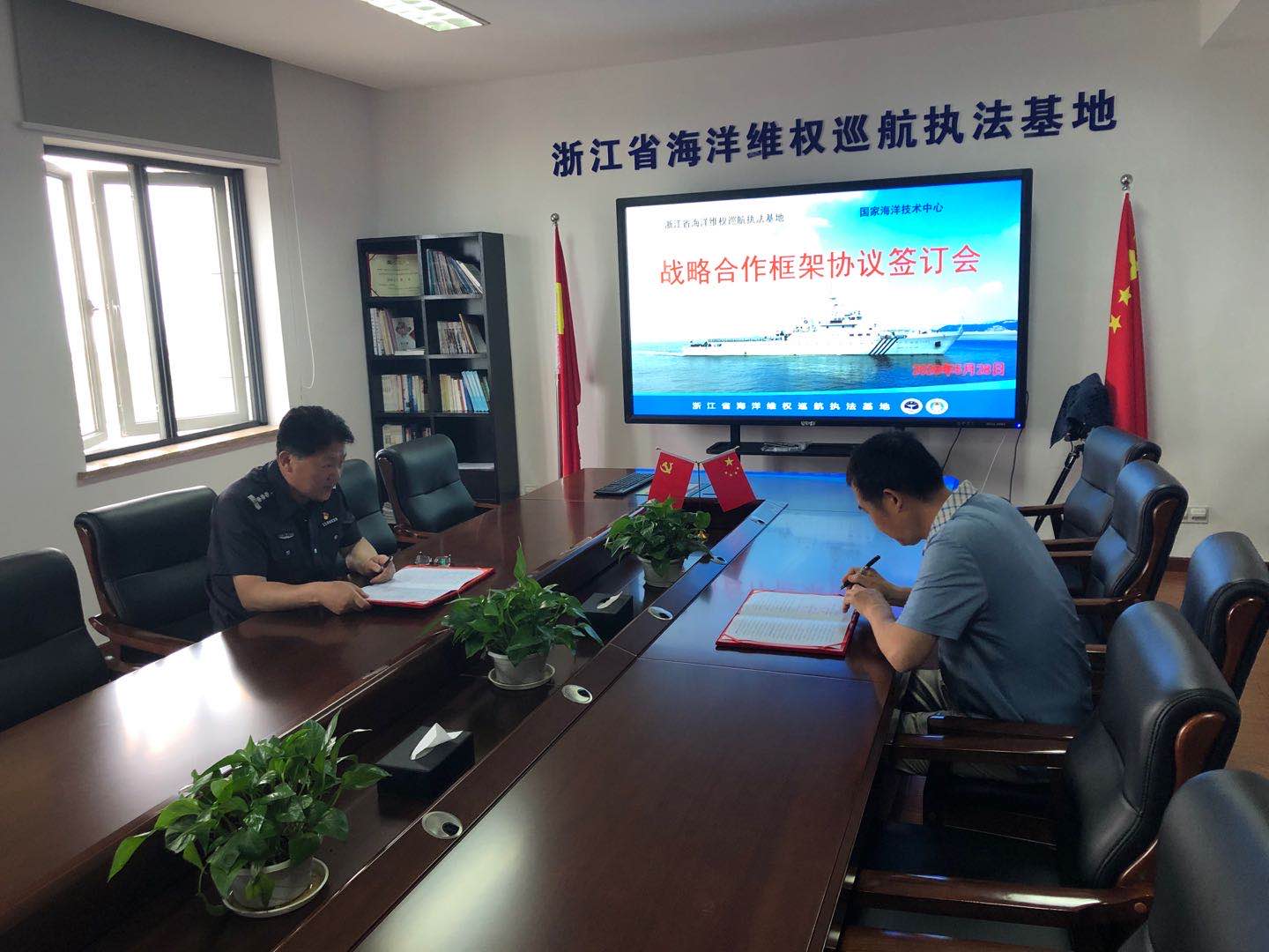 5月28日下午,中心与浙江省海洋维权巡航执法基地战略合作框架协议签约仪式在浙江省舟山市举行。国家海洋技术中心近海室冯林强主任与浙江省海洋维权巡航执法基地主任林军代表双方签署战略合作框架协议。